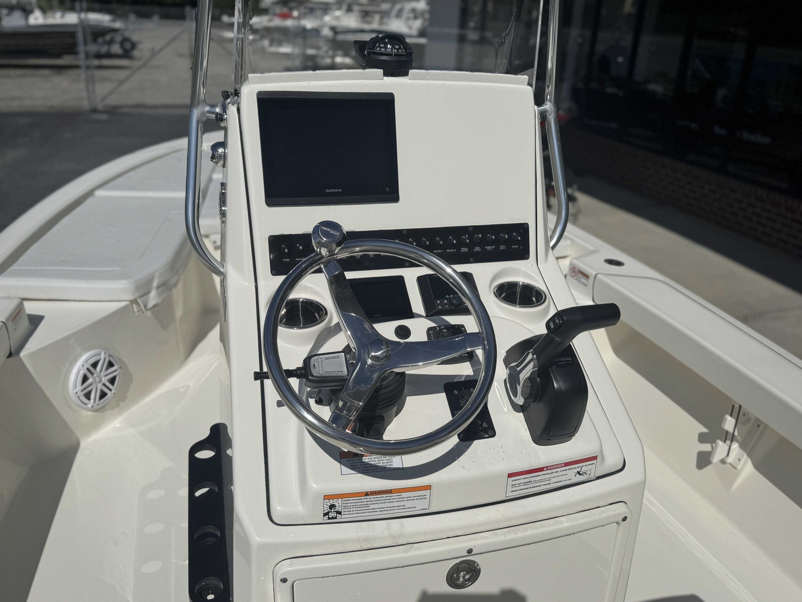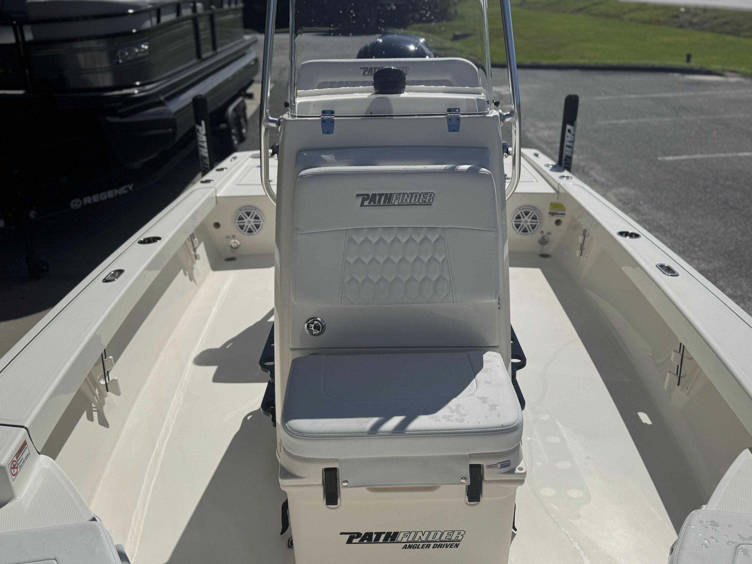 Raw Water Washdown System Fresh Water Washdown Garmin 10in Touchscreen with Sonar (GPSMAP 8610XSV) 3-Point Lifting Hardware Springline Cleats (2, Folding) 3-Bank Battery Charger Release Well, Aft Starboard |
