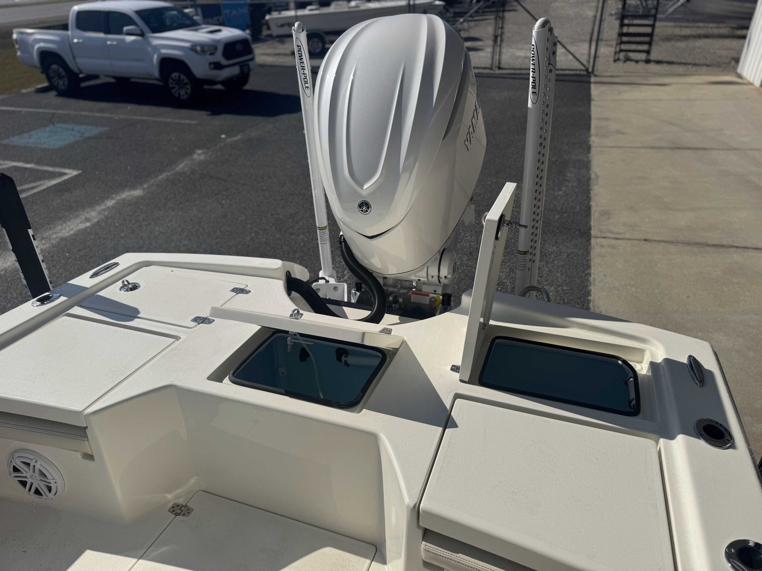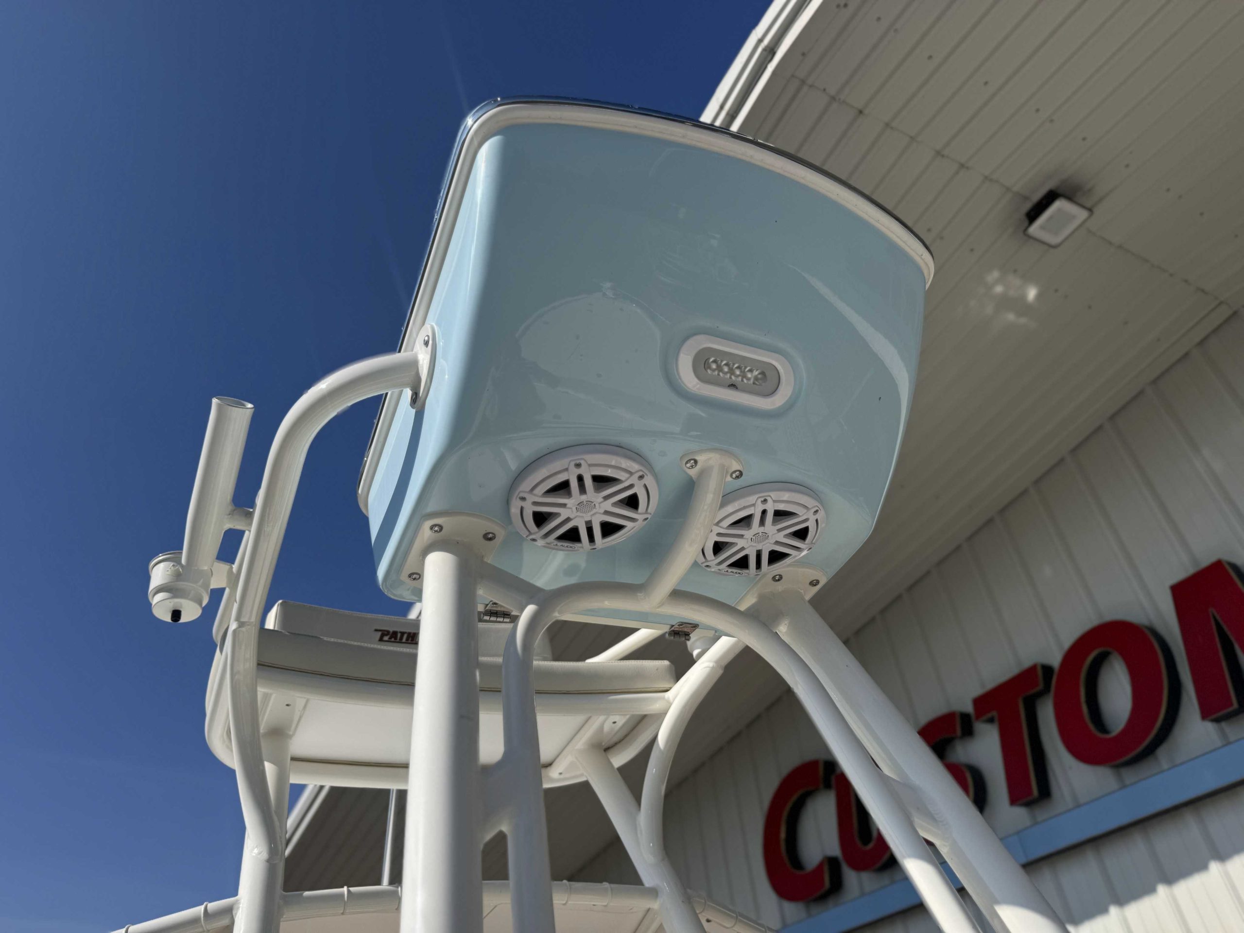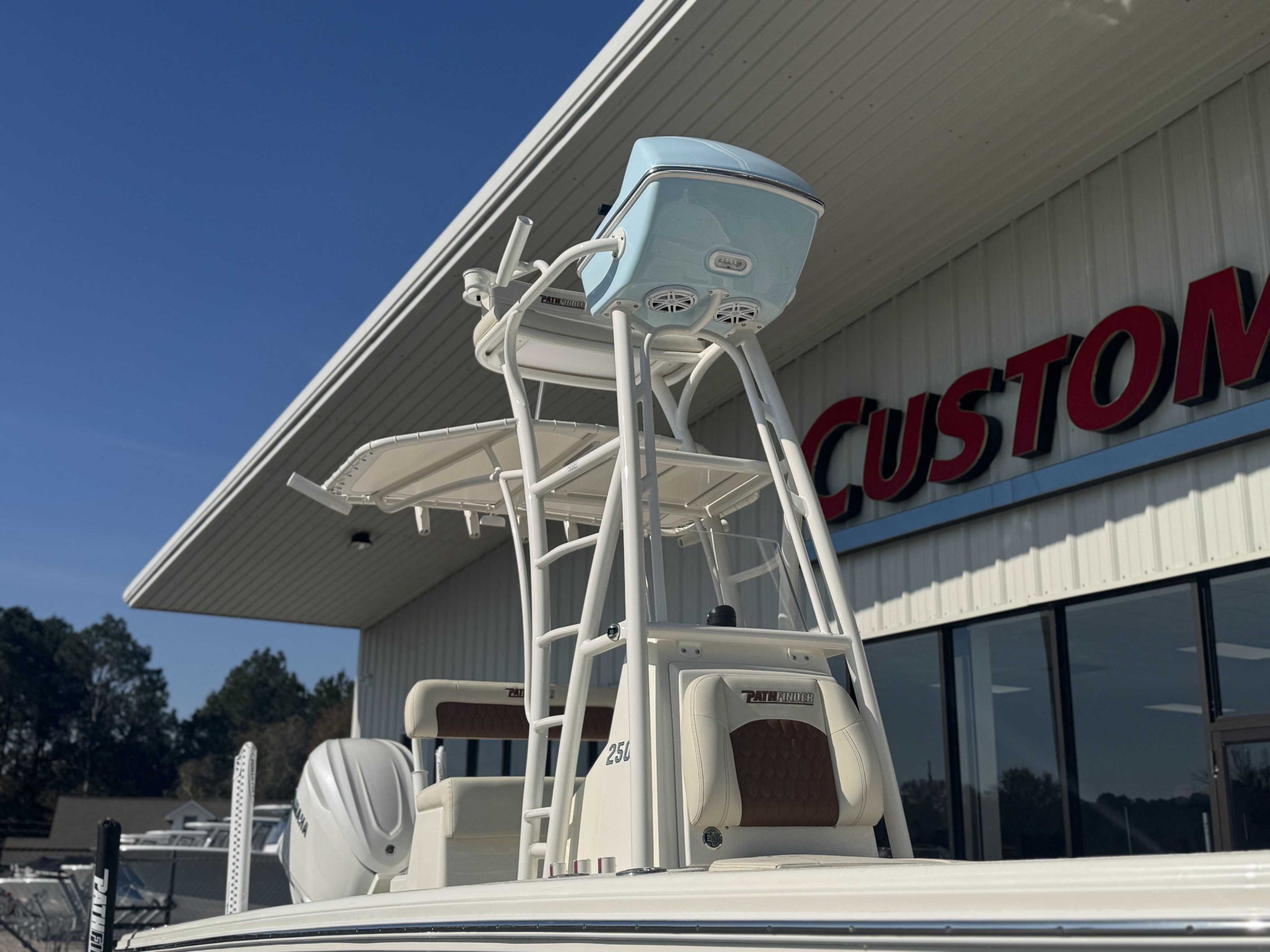 | 2ND STATION HELM POD (Atlantic Blue) upgrade FIBERGLASS COOLER (Pure White) upgrade CONSOLE INSERT COLOR (Atlantic Blue) upgrade Yamaha F350XSA2 White 350HP Helm Master EX w-INT/DES 2nd Station Tower for HMEX & DES 2nd Station Weblon - White 2nd Station Trim - White |