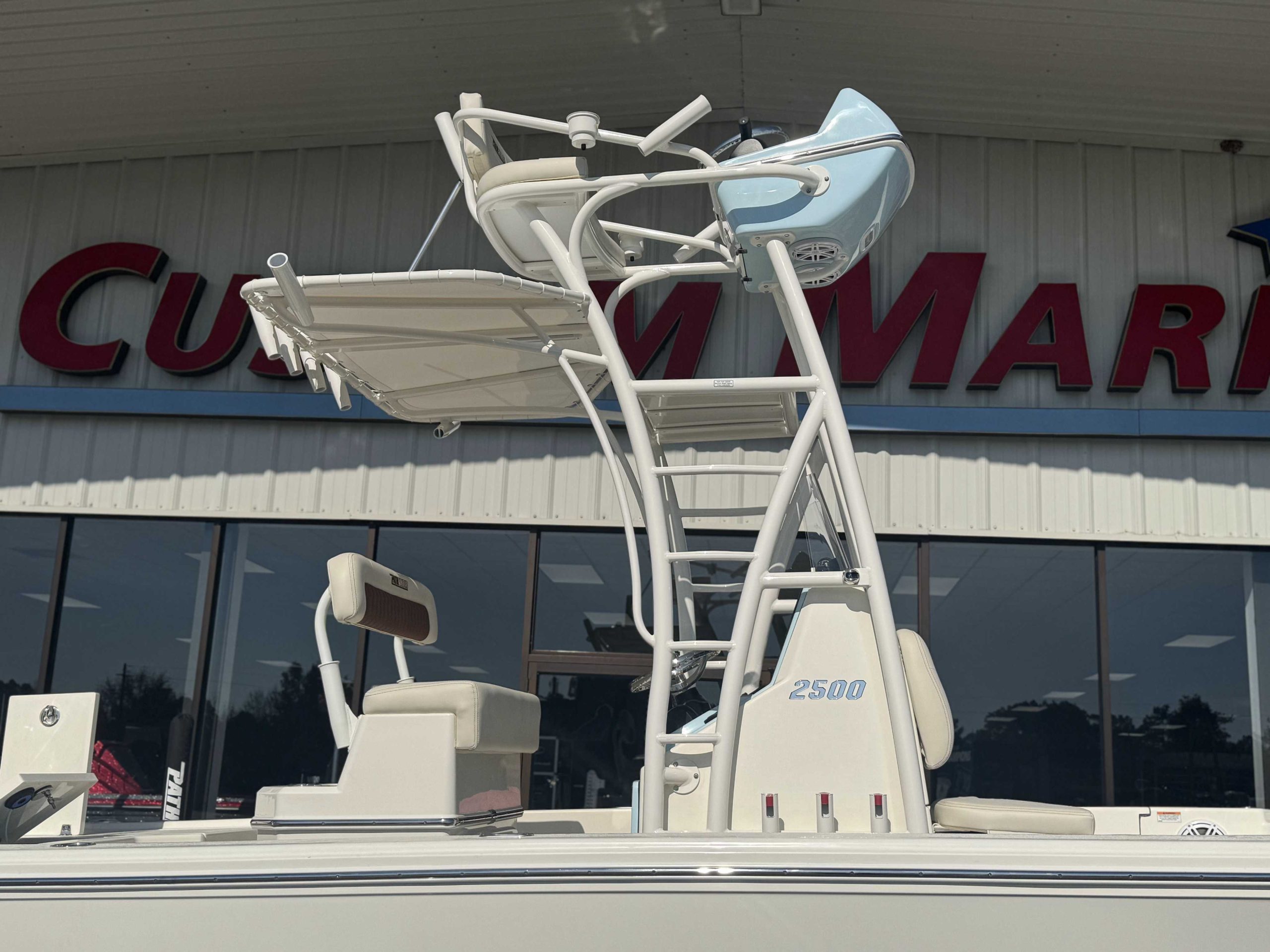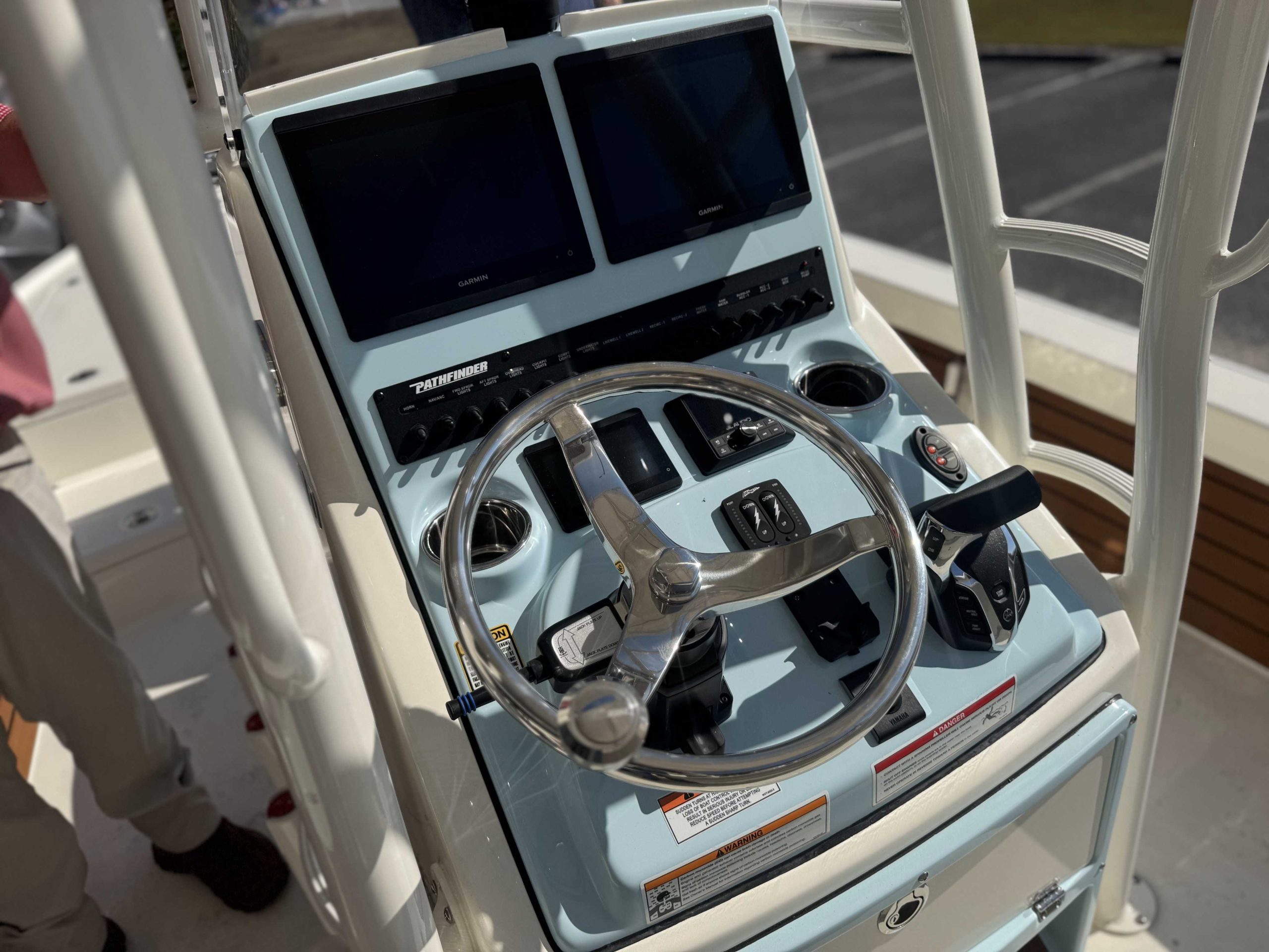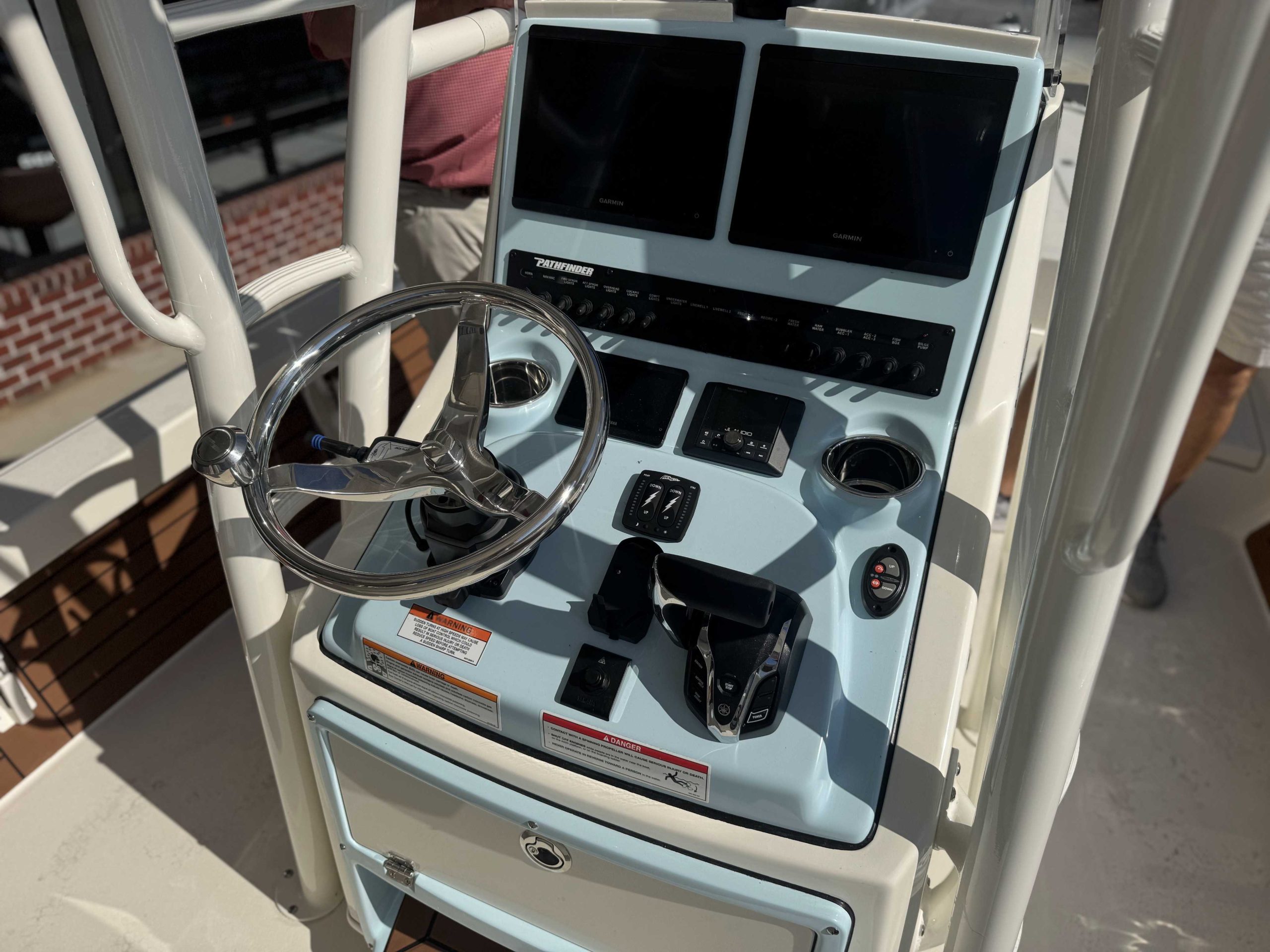 | 2ND STATION HELM POD (Atlantic Blue) upgrade FIBERGLASS COOLER (Pure White) upgrade CONSOLE INSERT COLOR (Atlantic Blue) upgrade Yamaha F350XSA2 White 350HP Helm Master EX w-INT/DES 2nd Station Tower for HMEX & DES 2nd Station Weblon - White 2nd Station Trim - White |