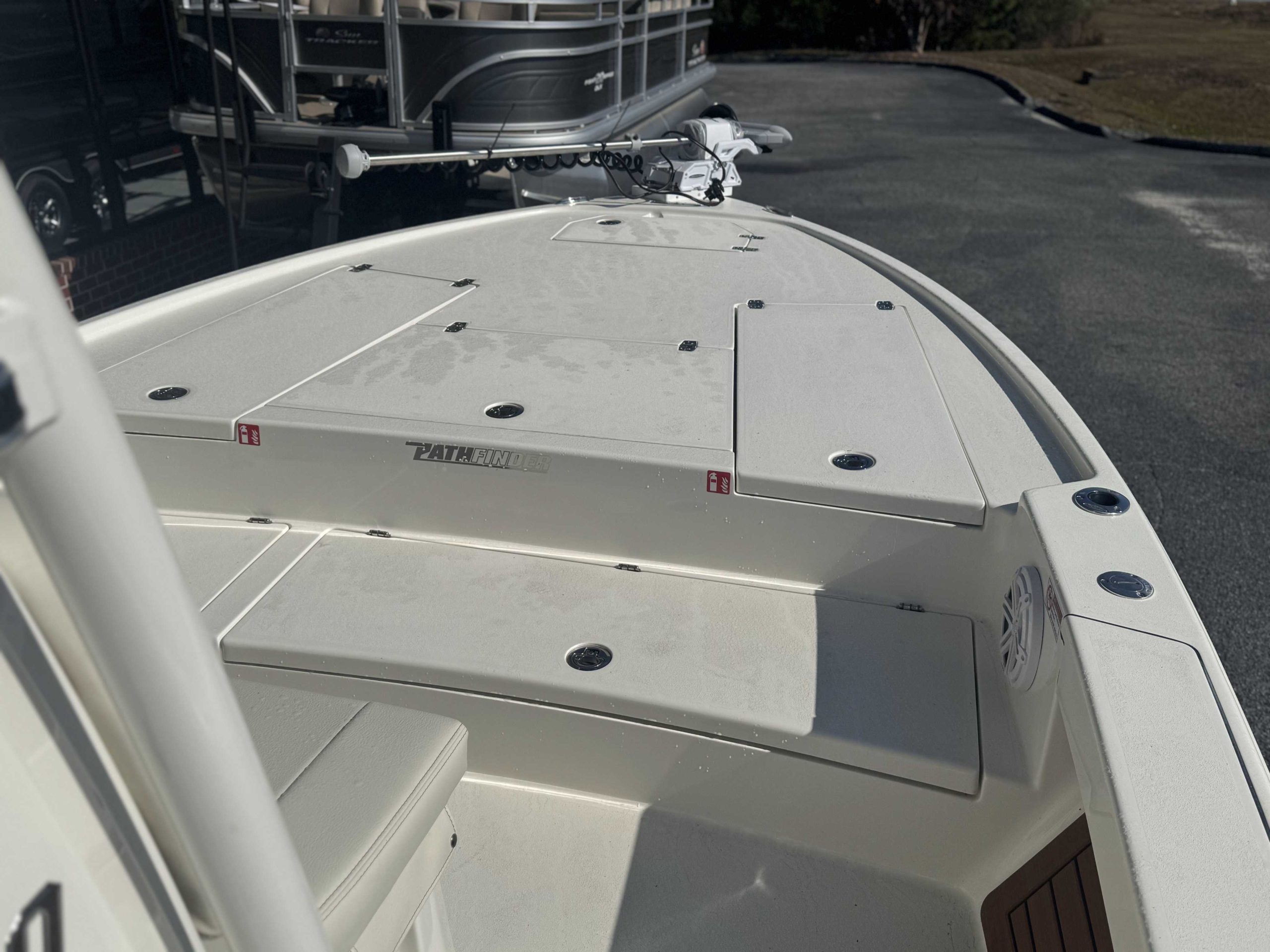 Integrated Aft Seats with Cushions Family Features Washdown Systems Raw Water Washdown System Family Features Comfort and Convenience Anchor locker Boarding ladder Center console full forward access w/ dutch doors Self-bailing cockpit Large Guttered, Gasketed, Locking Dry Storage Compartments (4) Cooler mounted in front of console w/ cushion set (deluxe Engel cooler) Fishing Features Advanced Angling Details Compass Console Windshield & Grabrail (Folding) Flush-mount Bow Cleat(s) (6 in) Flush-mount Stern Cleat (2) In-deck Castnet Storage Locker Insulated Fish Box (43 gal) Locking Rod Storage (port & stbd) Console rod rack (2, 4-bank) Flush-mount gunnel rod holder (4) |