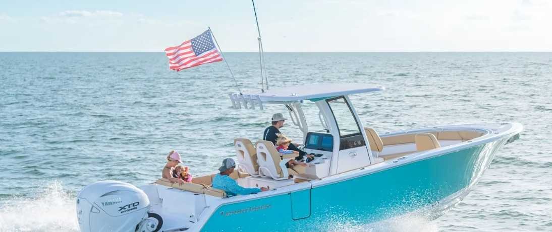Lockable Console Storage Porcelain Head w/ Overboard Discharge & Pump Out Scanstrut ROKK Wireless Phone Chargers (2) Stainless Steel Steering Wheel w/ Knob Seating, Upholstery & Pads 68 Quart Built-In Console Cooler Seat Bow Bolsters Bow Cushion Set w/ Bow Sundeck Cushion Cockpit Bolsters Console Footrest w/ Storage & Pads Dual Premium Chairs w/ Swiveling & Sliding Bases Electric Actuated Bow Sun Deck/Table Fiberglass Leaning Post Premium Serenity Sileather Marine Silicone Fabrics Rear Bench Seat w/ Flip Flop Backrests Removable Bow Backrest SunDeck/Table Cushion YETI Tundra 65qt. Cooler with Pad & Tie Downs Livewells, Pumps & Storage (2) 16 Gallon Aft Aquarium Livewells |