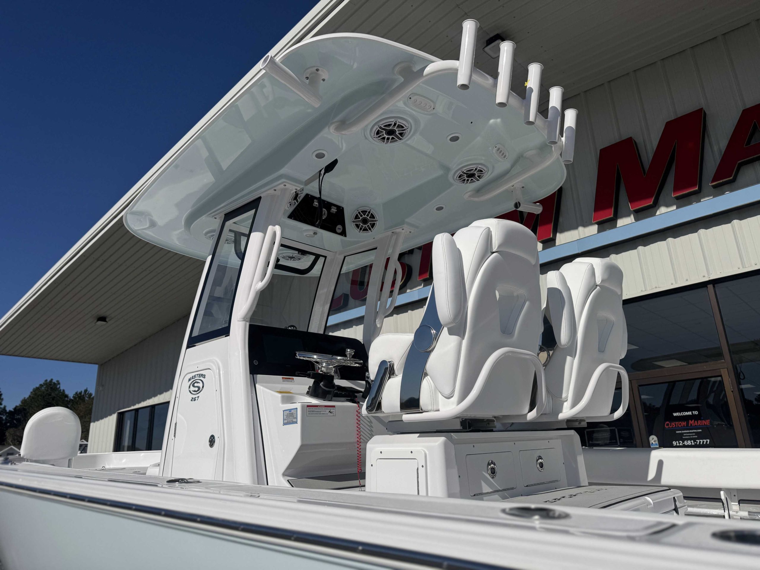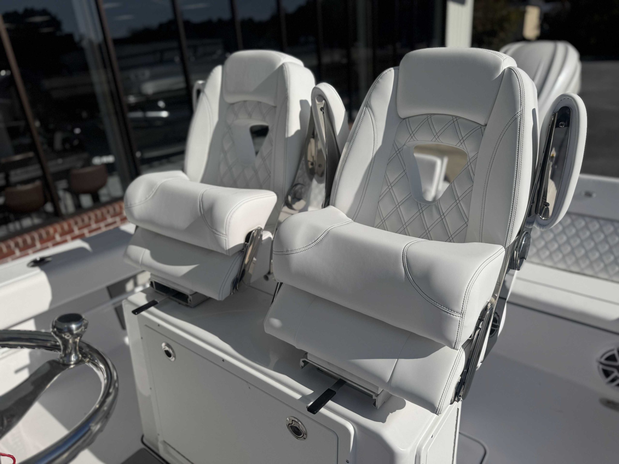 Lockable Console Storage Scanstrut ROKK Wireless Phone Chargers (2) Stainless Steel Steering Wheel w/ Knob Seating, Upholstery & Pads 68 Quart Built-In Console Cooler Seat Cockpit Bolsters Dual Premium Chairs w/ Swiveling & Sliding Bases Premium Serenity Sileather Marine Silicone Fabrics Rear Fold Up Bench Seats w/ Storage Removable Bow Backrest w/ Seat Cushions YETI Tundra 65qt. Cooler with Pad & Tie Downs Livewells, Pumps & Storage (1) 14 Gallon Front Recirculating Livewell w/ Pro-Air (1) 35 Gallon Rear Recirculating Livewell w/ Pro-Air (2) 21 Gallon Rear Livewell 25 Gallon Freshwater Tank w/ Fluid Level Sensor & Washdown Anchor Locker Freshwater Washdown Anchor Storage Battery Switches & 2 Discover AGM Traction Batteries High Speed Livewell Pick Up |